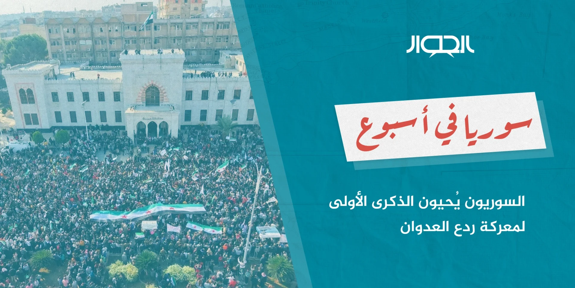 وكان الرئيس أحمد الشرع وجّه كلمة هنّأ فيها الشعب السوري بالذكرى السنوية الأولى لانطلاق معركة ردع العدوان ودعاهم إلى الاحتفال بالمناسبة في مختلف المدن والبلدات.